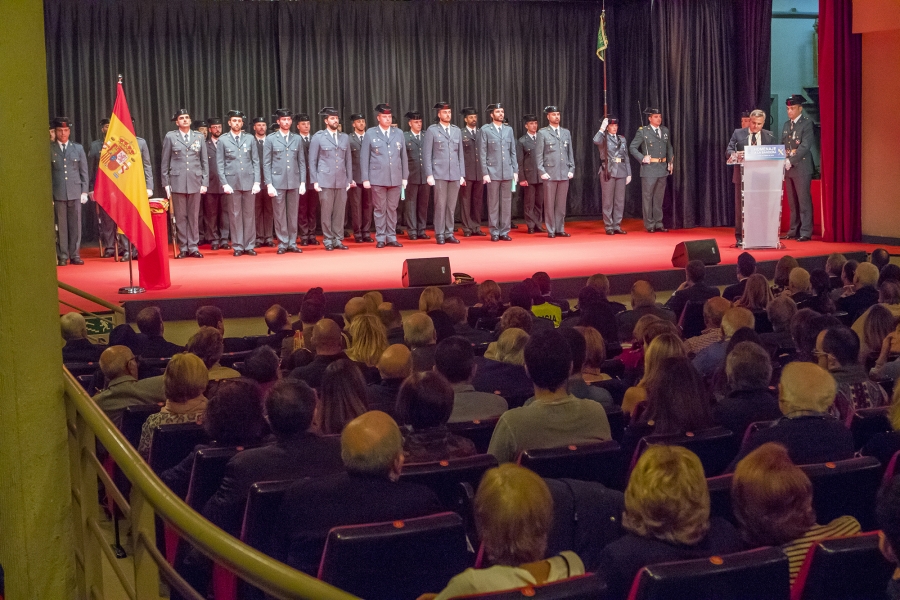 A pesar de que la lluvia obligó a cambiar el lugar de celebración, lo que impidió izar la enseña nacional en el Parque de Colón, la Guardia Civil formó filas en el escenario del centro municipal y allí tuvo lugar un solemne acto presidido por el Alcalde, Narciso de Foxá; el Comandante Jefe de la Sexta Compañía, Julián Martínez Power y el Teniente José Manuel Mérida.