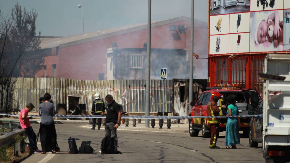 Extinción del fuego en la nave industrial de Fuenlabrada (Madrid). Santi Burgols / epv