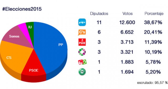 Por su parte, VOX y UPyD, con el 3,45 y el 3,31% de los votos respectivamente, se quedan sin representación. En el caso de UPyD, pierde los tres concejales que obtuvo en los comicios de 2011.